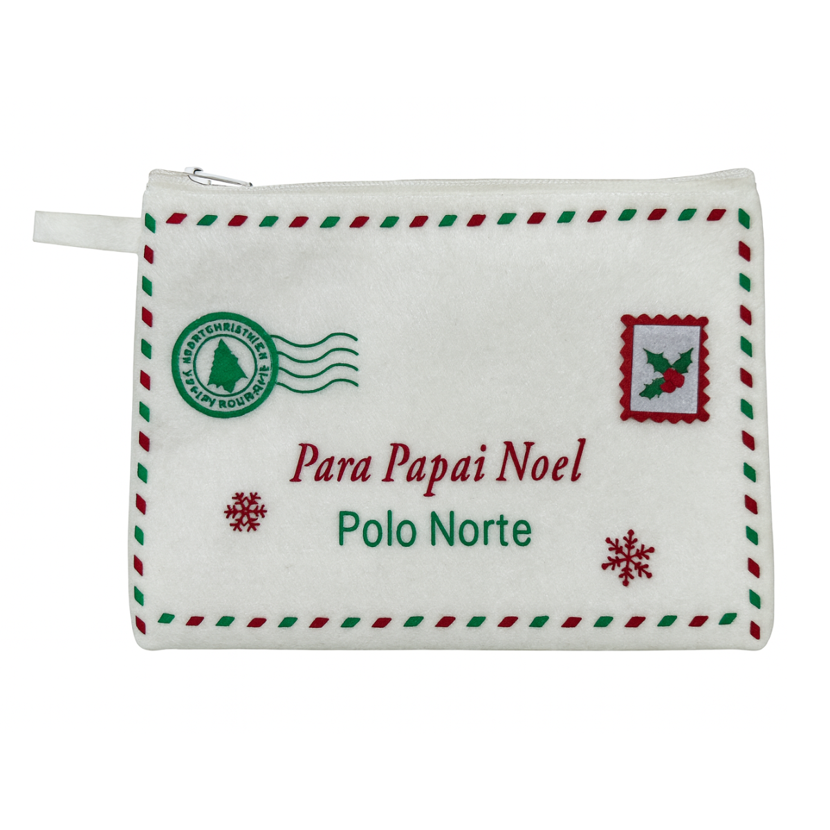 A Bolsa Carta Para Papai Noel 17x13cm é um acessório criativo e encantador para compor a decoração natalina. Com fechamento em zipper, é prática e funcional, podendo ser utilizada para guardar pequenos objetos, lembranças ou até mesmo bilhetes com desejos de Natal. Seu design remete às tradicionais cartas enviadas ao Papai Noel, tornando-se uma peça divertida e temática para enfeitar ambientes ou complementar a mesa posta de fim de ano.
