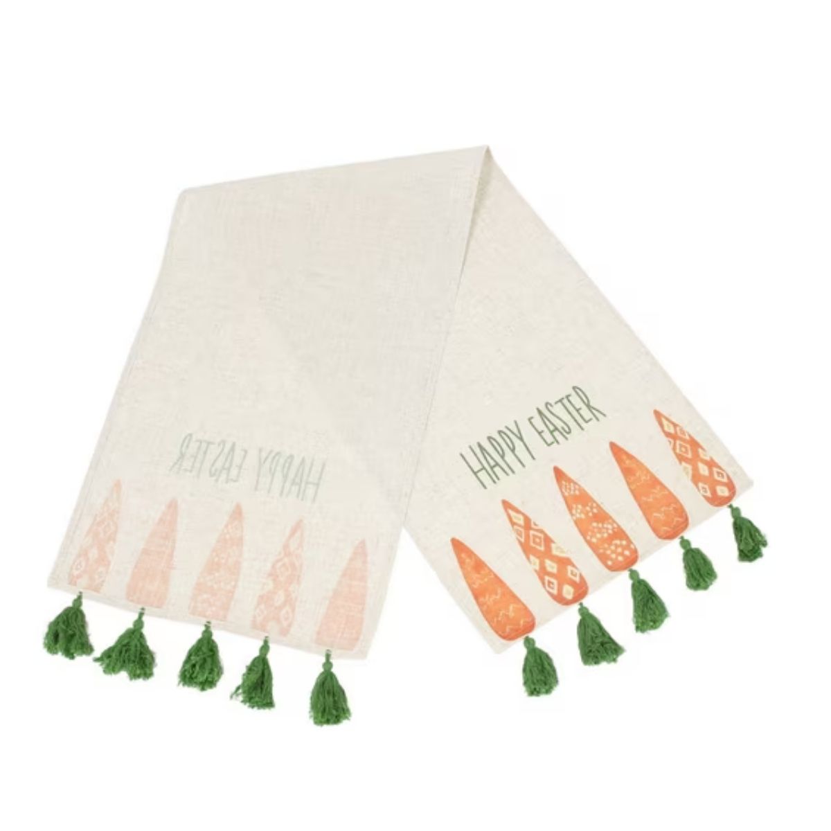 O Caminho de Mesa de Pascoa Cenouras e uma peca alegre e encantadora que traz leveza e um toque ludico para a decoracao da mesa. Com estampa tematica de cenouras ele cria um clima divertido e acolhedor perfeito para celebrar a Pascoa em familia.