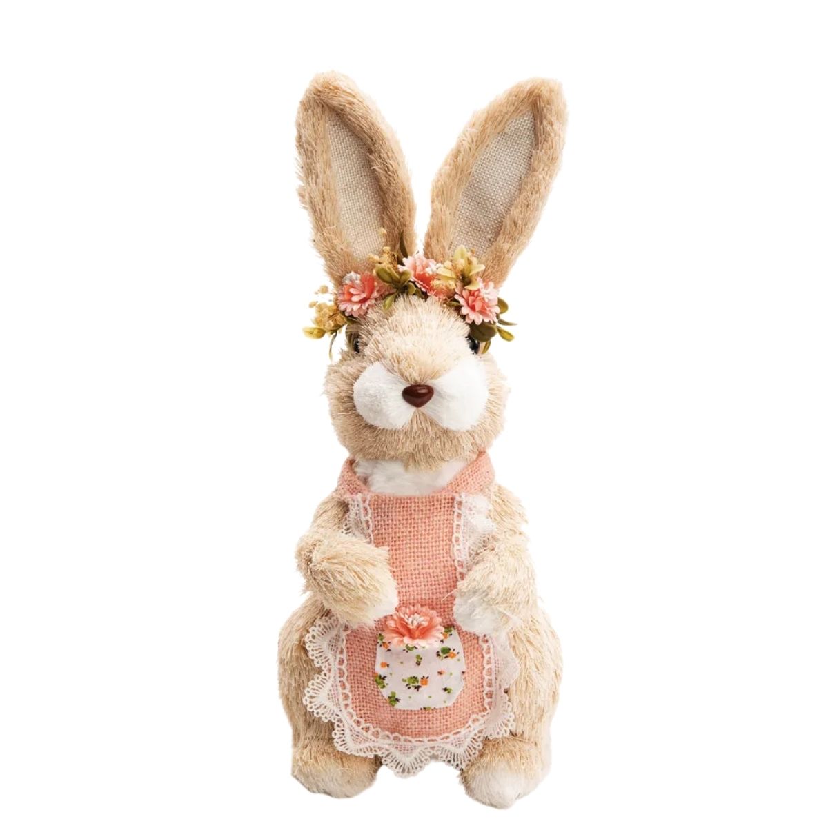 Coelha Decorativa Com Avental Rosa e Arranjo De Flores