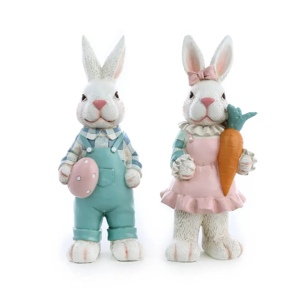 Coelho de Páscoa Em Resina Casal Coelhos 30cm