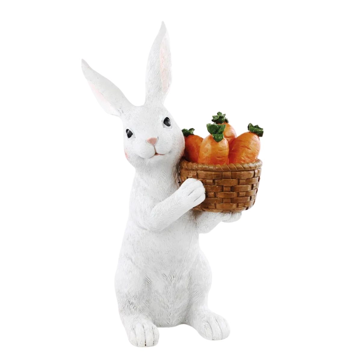 O Coelho Decorativo Flower com Cesta de Cenoura e uma peca encantadora da Colecao de Pascoa 2026 que une delicadeza e charme em uma composicao harmoniosa. Com visual suave e detalhes florais o coelho carrega uma cesta de cenouras trazendo simbolos classicos da Pascoa com um toque acolhedor e elegante.