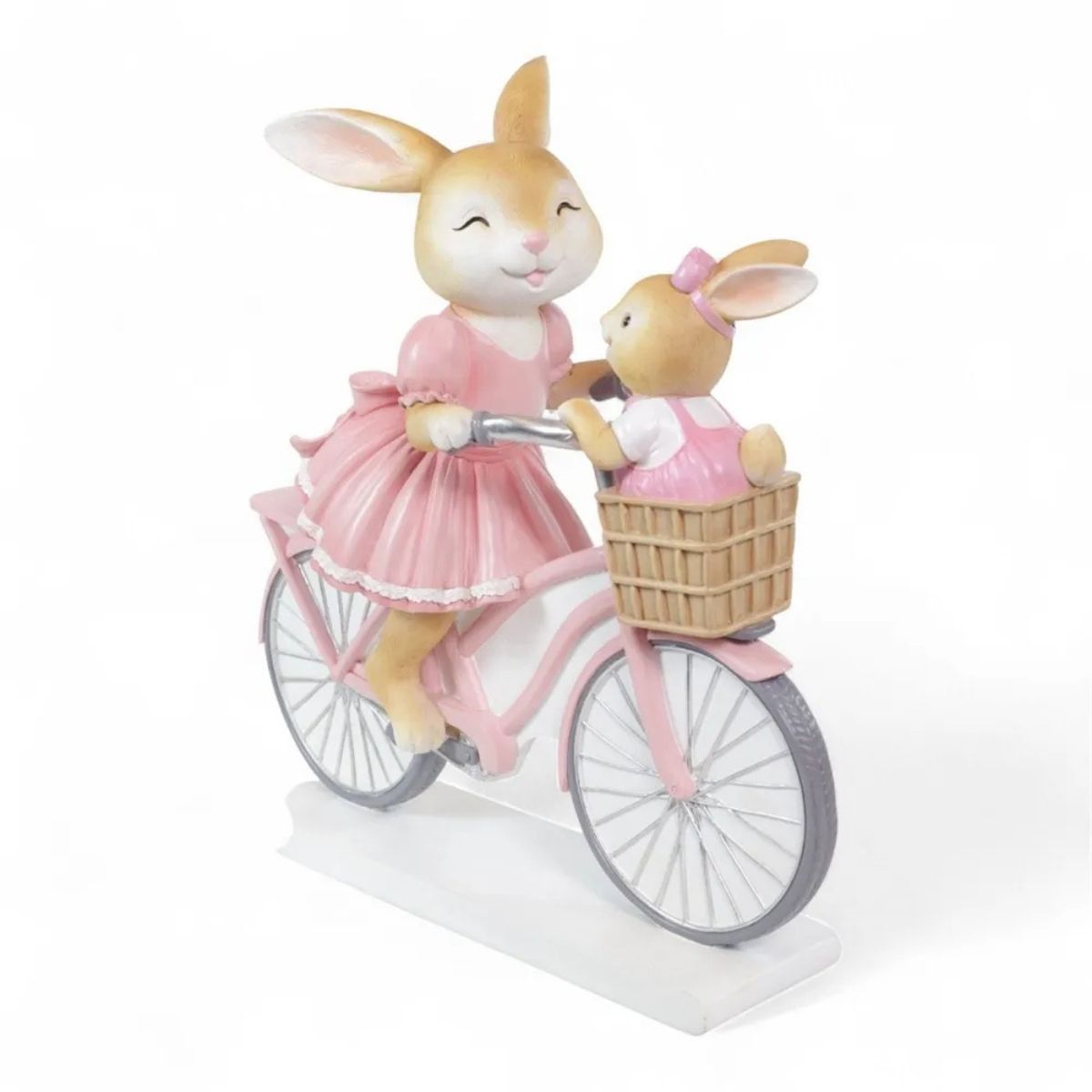 O Coelho de Pascoa Flower Passeio de Bike em Resina e uma peca alegre e cheia de encanto que transmite leveza liberdade e um clima primaveril para a decoracao pascal. A cena do coelhinho em passeio de bicicleta remete aos momentos felizes ao ar livre trazendo sensacao de movimento e descontraçao.