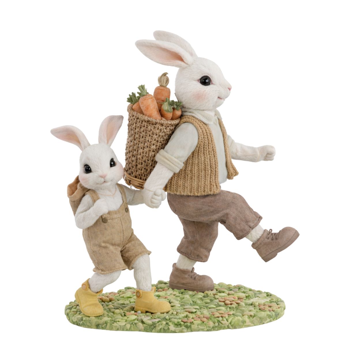 O Coelho da Pascoa La Belle Passeio no Parque e uma peca delicada e cheia de encanto que transmite leveza tranquilidade e um clima acolhedor para a decoracao pascal. Com visual suave e cena inspirada em um passeio ao ar livre o coelhinho remete aos momentos simples e felizes vividos em familia.