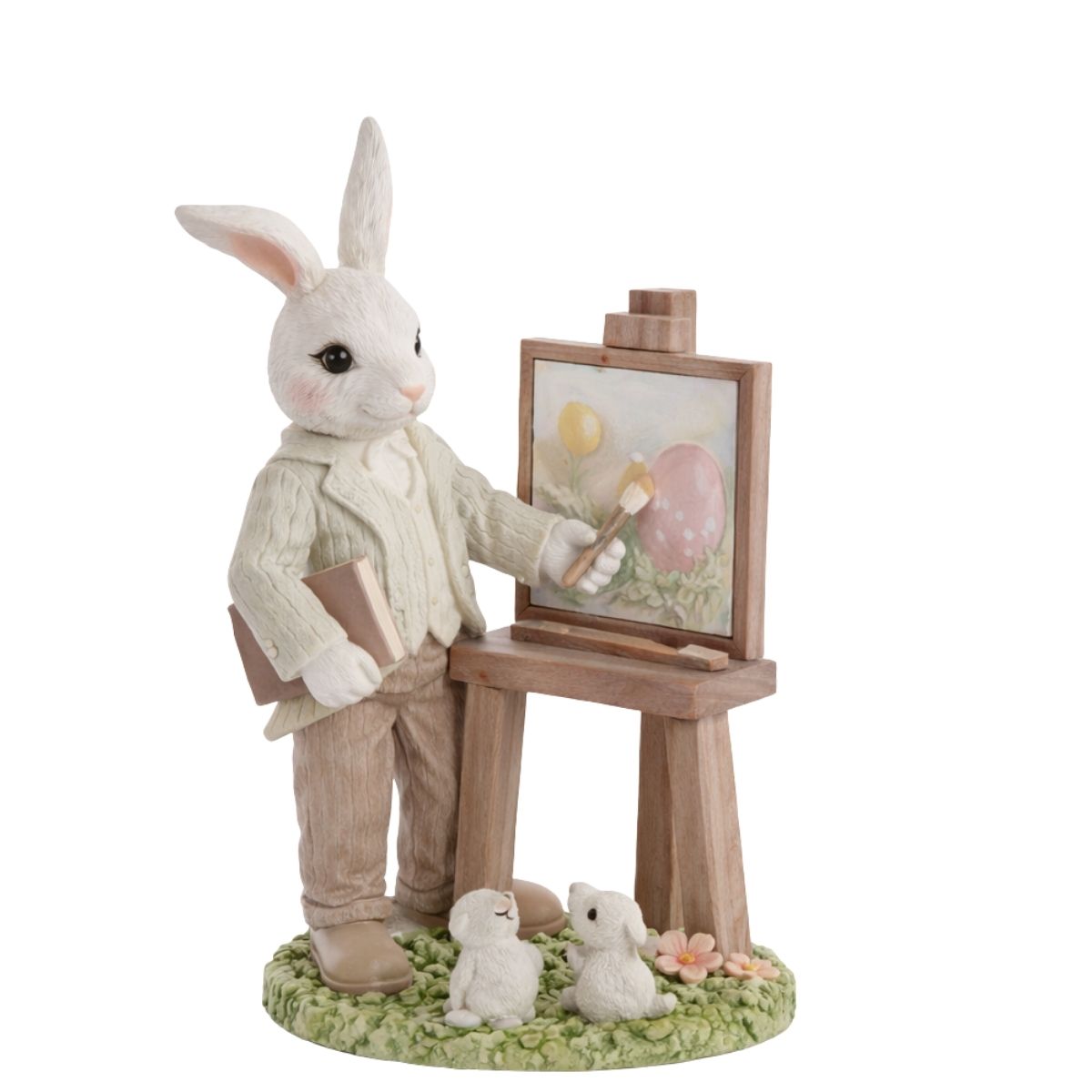 O Coelho da Pascoa La Belle com Quadro de Pintura e uma peca delicada e cheia de significado que transmite sensibilidade criatividade e um clima acolhedor para a decoracao pascal. Com visual artistico e expressao suave o coelhinho segurando o quadro remete a beleza dos pequenos detalhes e aos momentos de contemplacao.