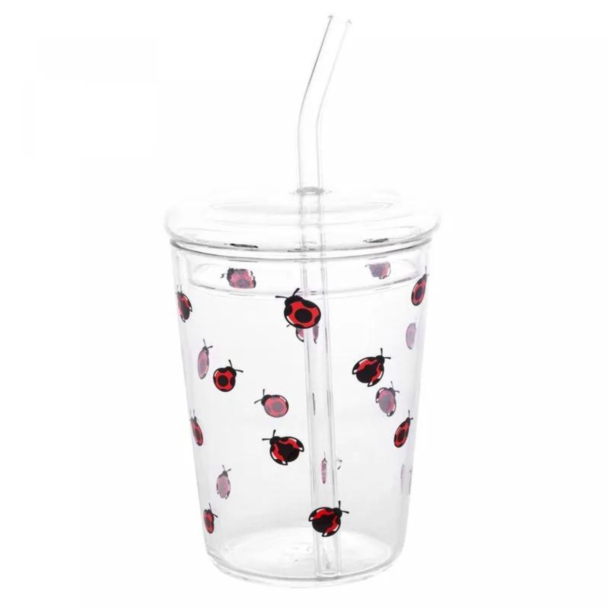 Copo de Vidro Borossilicato com Tampa e Canudo Ladybug 360ml – Lyor