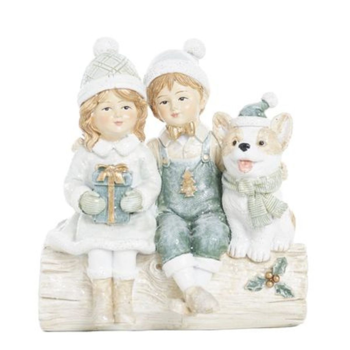 Enfeite Decorativo Crianças com Cachorro Branco/Verde 11,5cm C/1Un