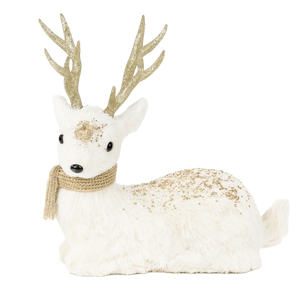 Rena com glitter branco e dourado, traz brilho e elegância à sua decoração natalina. Destaque garantido em qualquer ambiente.