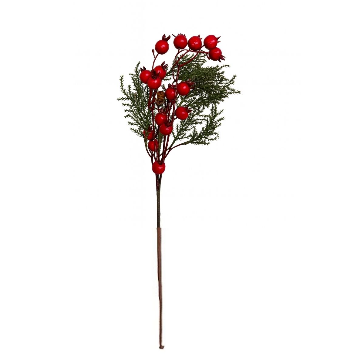 Galho decorativo de 74cm com frutas artificiais em tons verde e vermelho. Ideal para compor arranjos, guirlandas e árvores de Natal. O contraste das cores traz um toque sofisticado e festivo, criando composições elegantes e naturais.