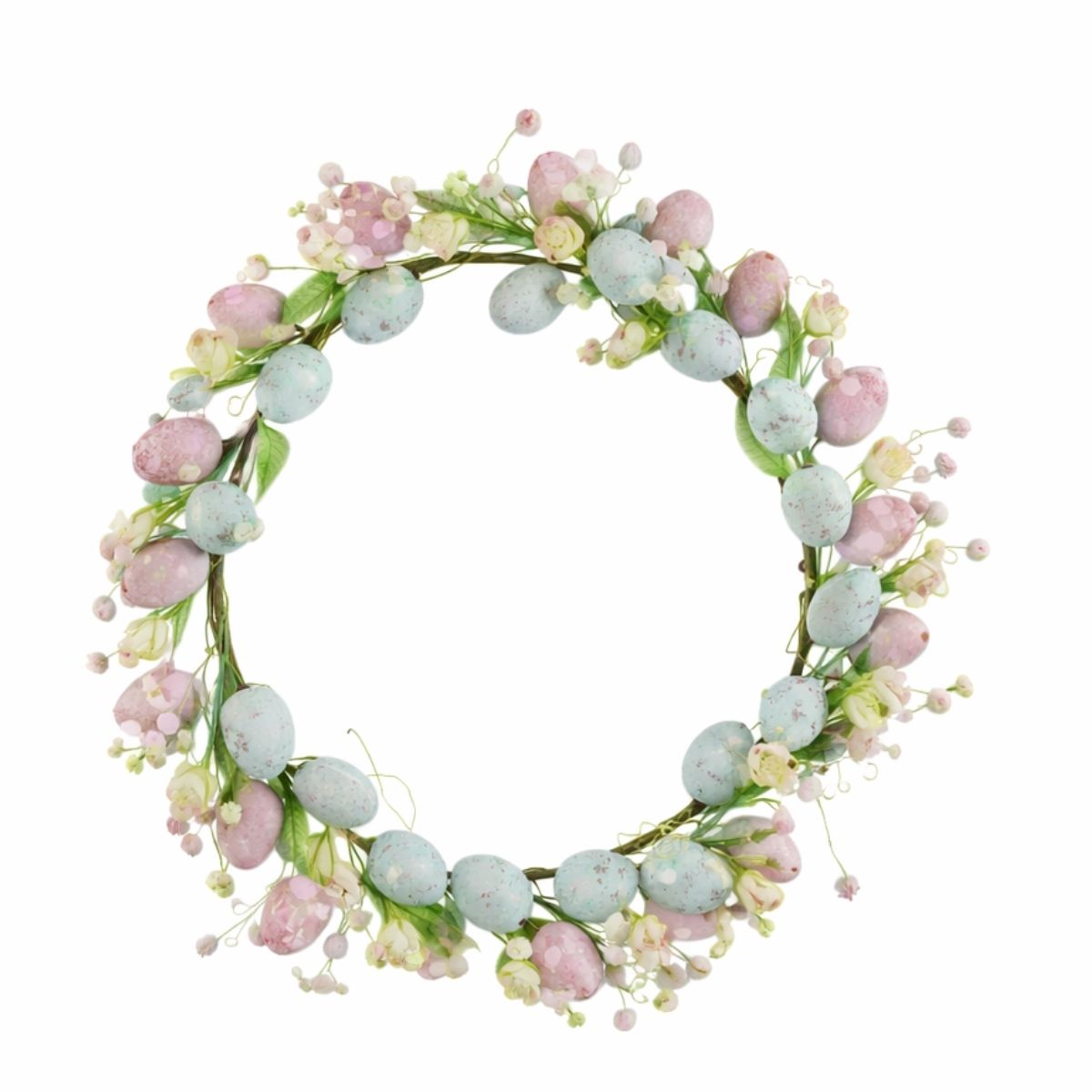 A Guirlanda de Pascoa Fondant de Ovos Pick e uma peca delicada e encantadora que traz leveza cor e um clima festivo para a decoracao pascal. Inspirada no estilo fondant e decorada com ovos ela transmite suavidade criatividade e um toque ludico ao ambiente.