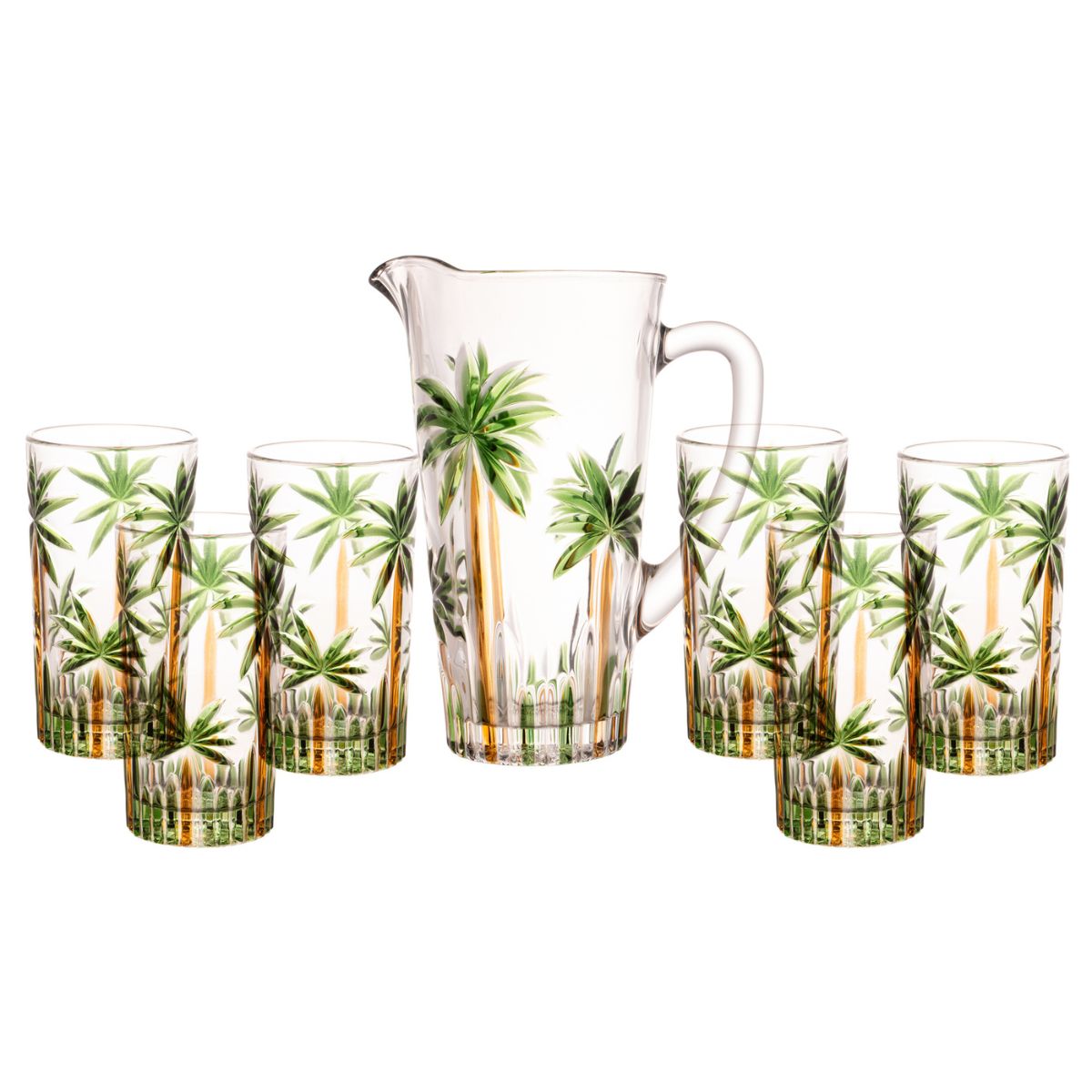 Jarra de Vidro Palm Tree Handpaint com 6 Copos 29394