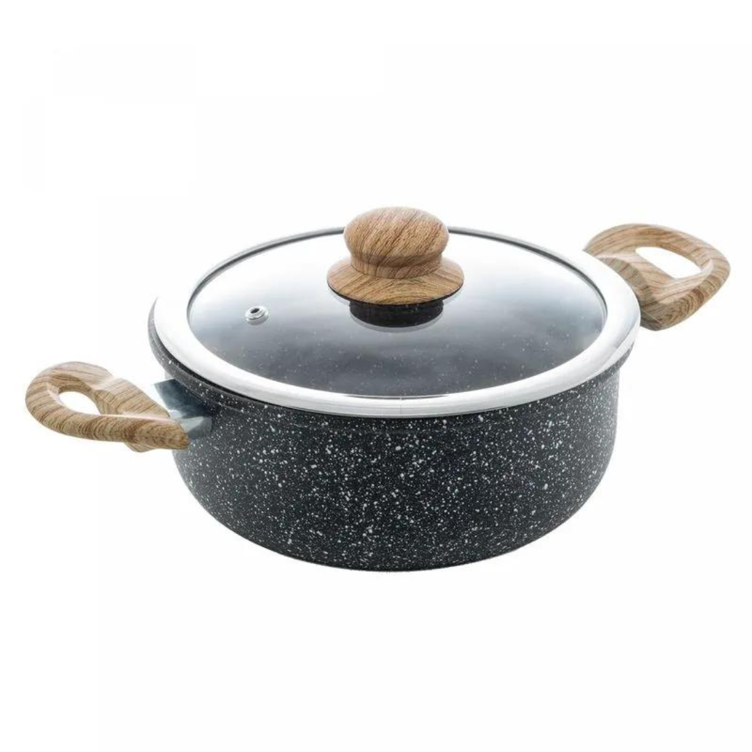 Com um revestimento cerâmico granilite preto, esta caçarola possui uma superfície antiaderente resistente, tornando-a ideal para cozinhar uma variedade de pratos e facilitando a limpeza após o uso.