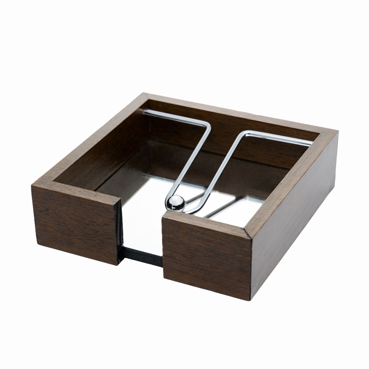 Ideal para uso em mesas de jantar, cafés, cozinhas, recepções ou eventos, o porta guardanapo mantém os guardanapos no lugar com praticidade, ao mesmo tempo em que adiciona estilo ao ambiente. Sua construção em madeira e metal garante durabilidade, enquanto o acabamento espelhado oferece delicadeza e brilho ao conjunto.