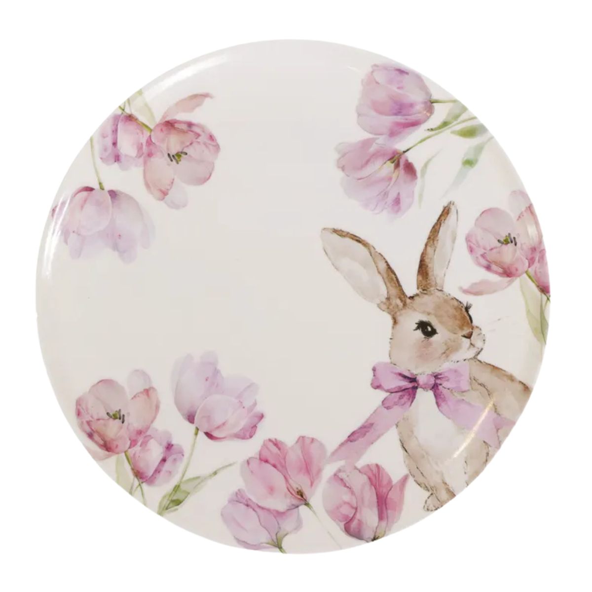 PRATO RASO DE PASCOA COELHO COM FLORES EM MELAMINA 25CM 01 UNIDADE 1070828