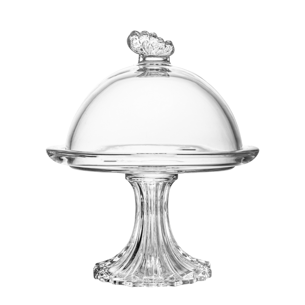 Prato para Doce com Pé e Tampa Butterfly 15cm x 15cm x 18cm Cristal