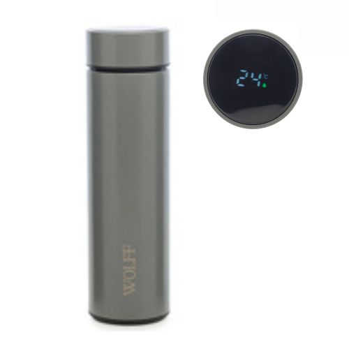 Garrafa Térmica Aço Inox C/ Termômetro LED Cinza 500ml Rojemac