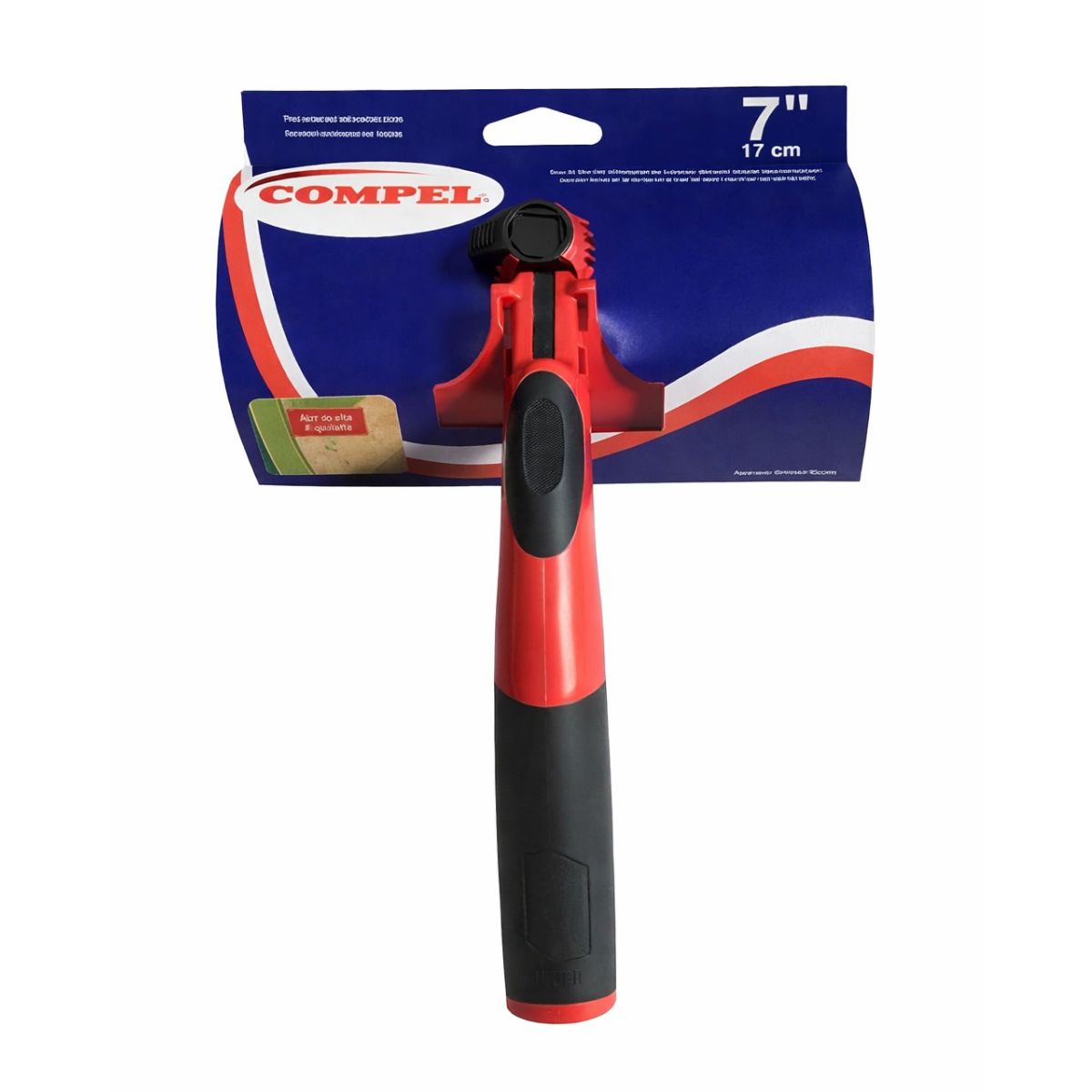 Modo de Usar: Mergulhe a parte da lã na bandeja de tinta da Pincéis Compel, evite sobrecarregar de tinta. Deslize o PAD ao longo da superfície a ser pintada e ele aplicará a tinta uniformemente. Aplique pressão constante ao pintar. Para ajustar o punho, solte o botão fazendo movimento anti-horário, para travar aperte o botão no sentido horário.