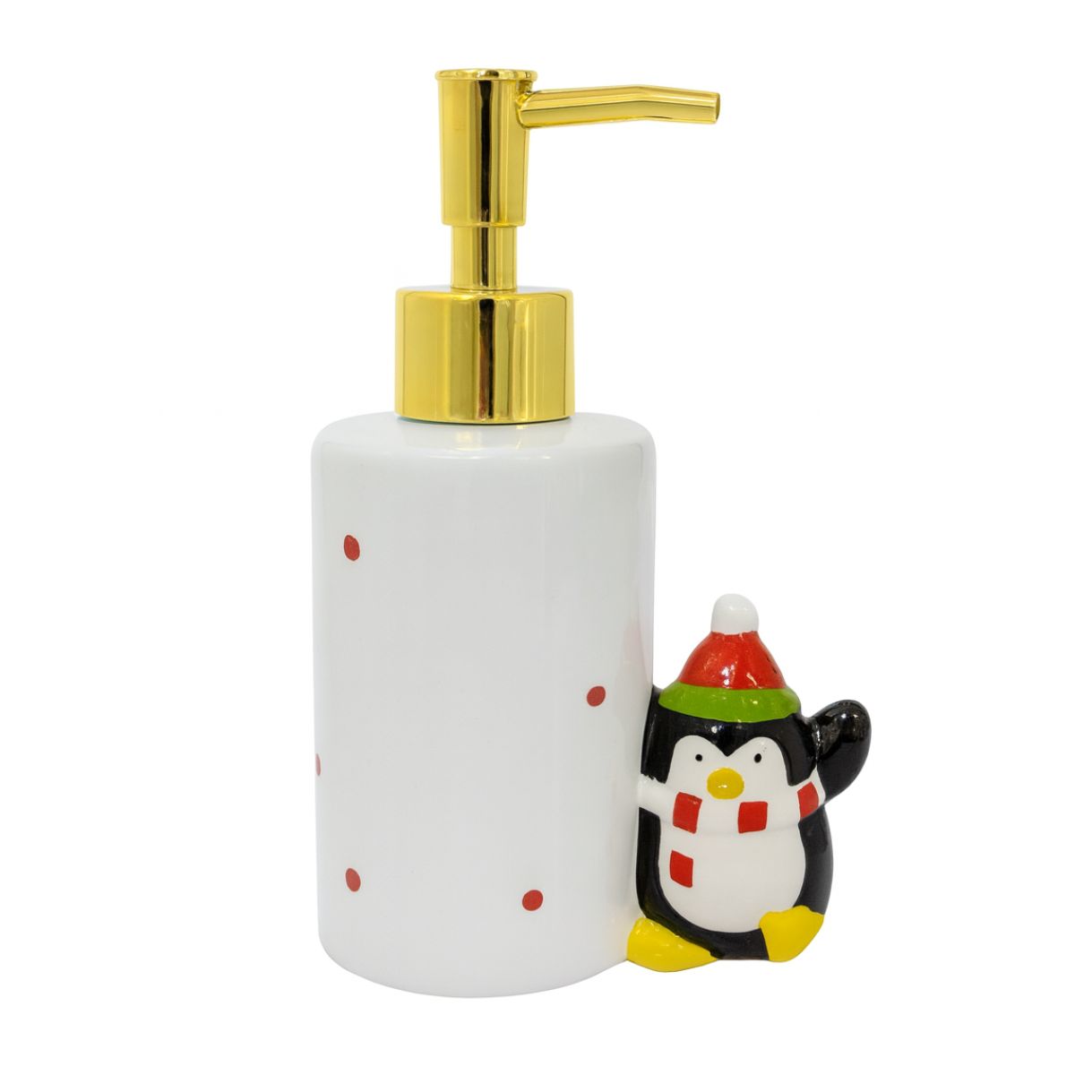 Saboneteira com dispenser de 18 cm, confeccionada em cerâmica esmaltada com acabamento refinado e temática natalina. Ideal para armazenar sabonete líquido, álcool gel ou loções, adicionando charme e delicadeza ao ambiente. Sua estética natalina, com cores e detalhes festivos, cria uma atmosfera alegre e harmoniosa, perfeita para completar a decoração da casa nessa época do ano.