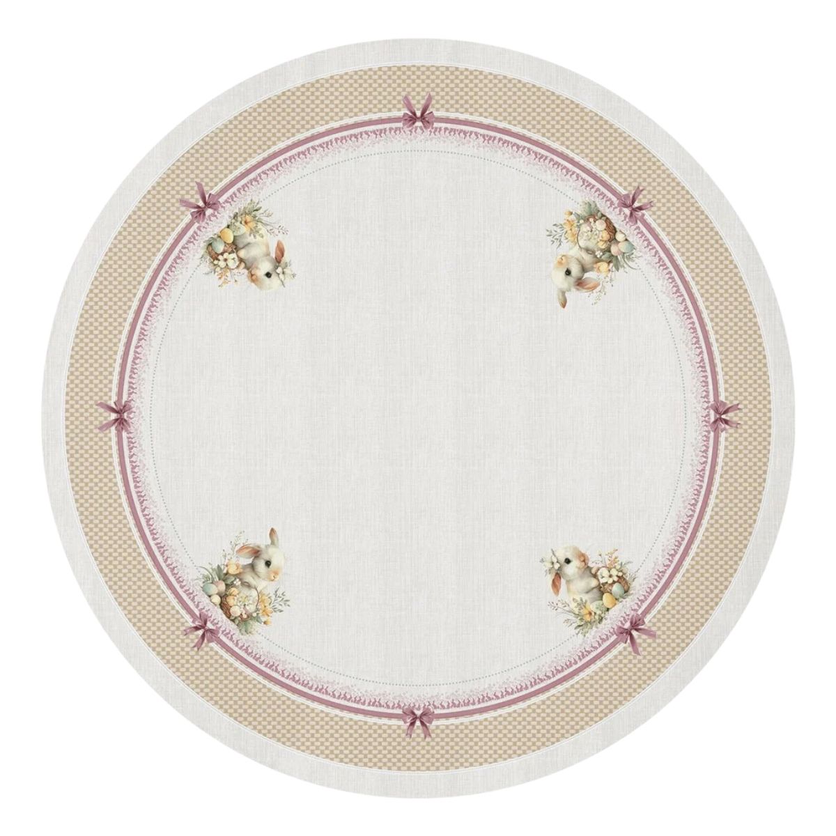 A Toalha de Mesa de Pascoa Redonda Ternura foi criada para envolver a mesa em delicadeza acolhimento e beleza. Com formato redondo e caimento harmonioso ela valoriza a composicao da mesa posta trazendo leveza e elegancia para as celebracoes pascais.