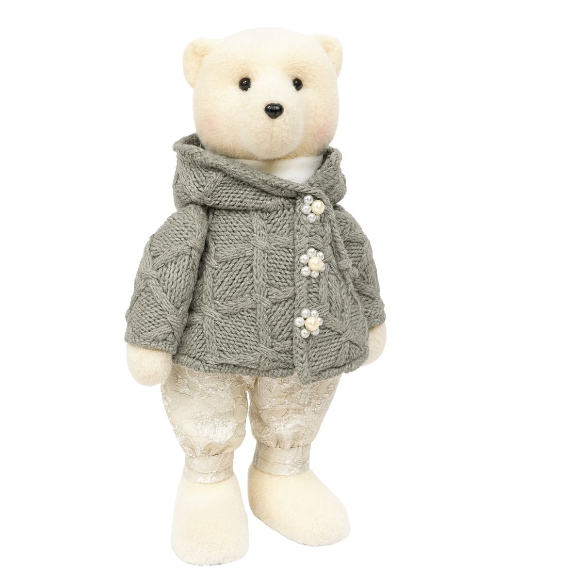 Urso natalino com detalhes coloridos. Peça charmosa e alegre para decorar salas, vitrines e aparadores.