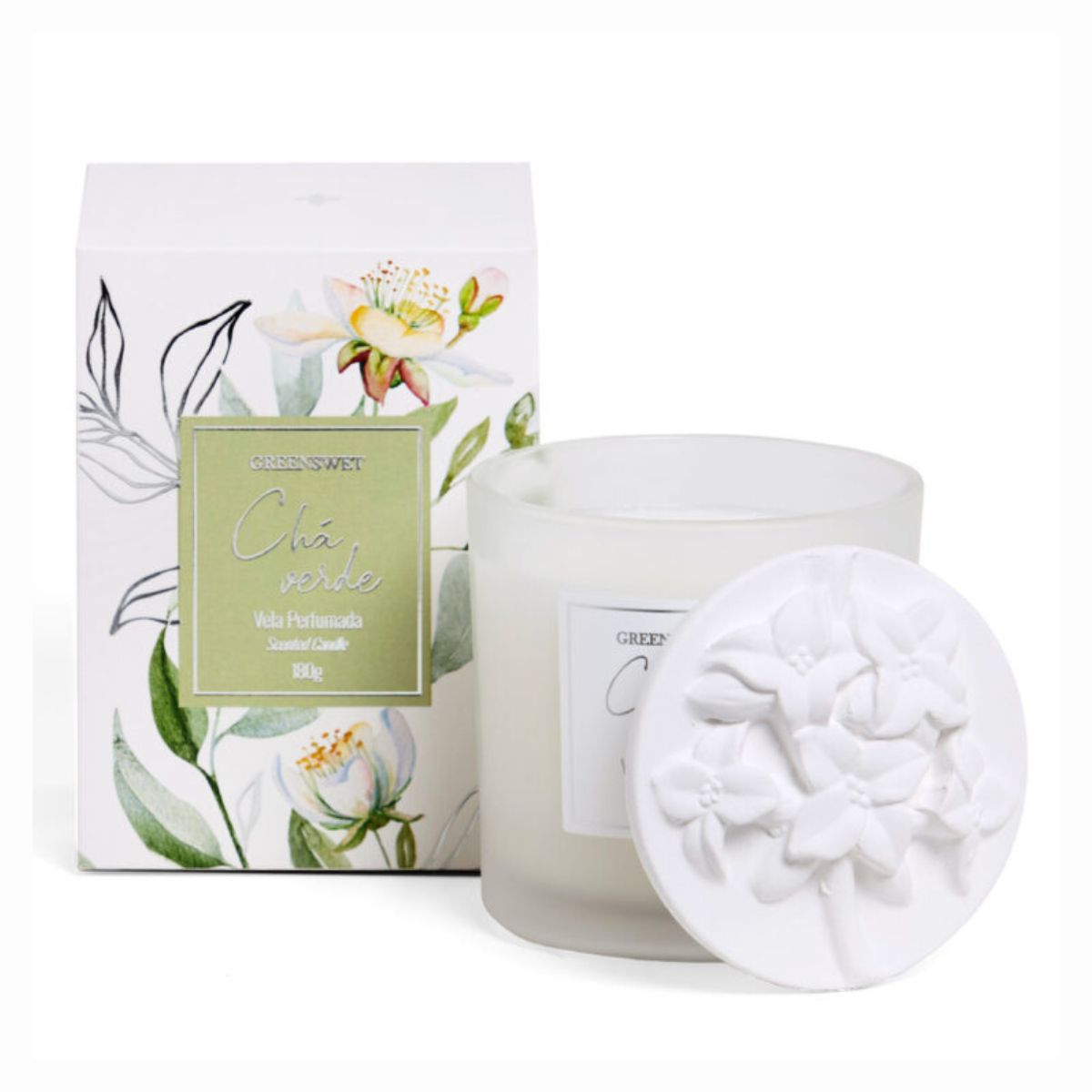 Descubra a magia da Vela Perfumada Cha Verde confeccionada artesanalmente. Alem de sua beleza decorativa e iluminacao encantadora, ela transforma lavabos, banheiros, quartos e salas de estar em ambientes acolhedores e sofisticados.